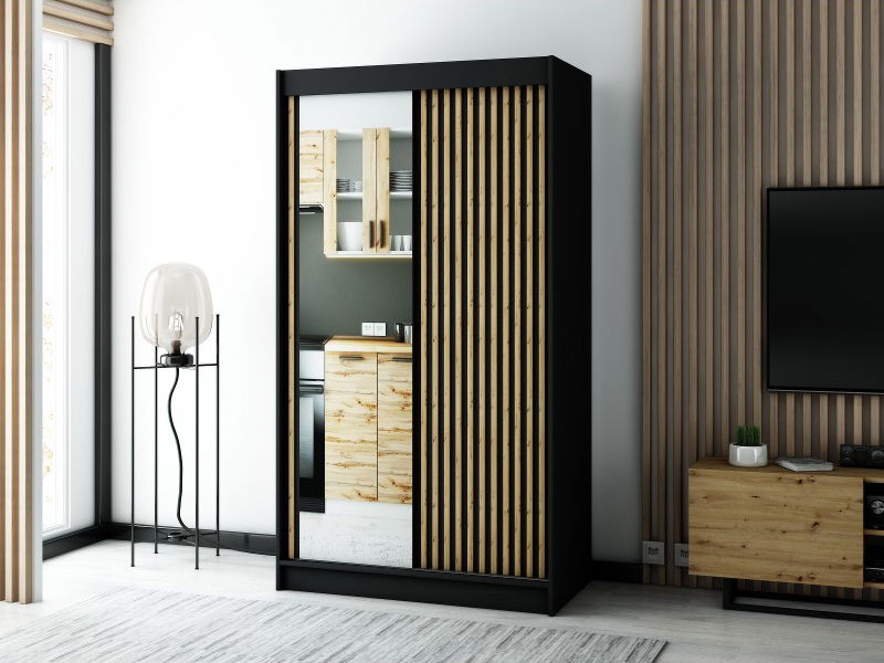 Šatníková skriňa 120 cm Ladonna 2 (čierna matná) (so zrkadlom)