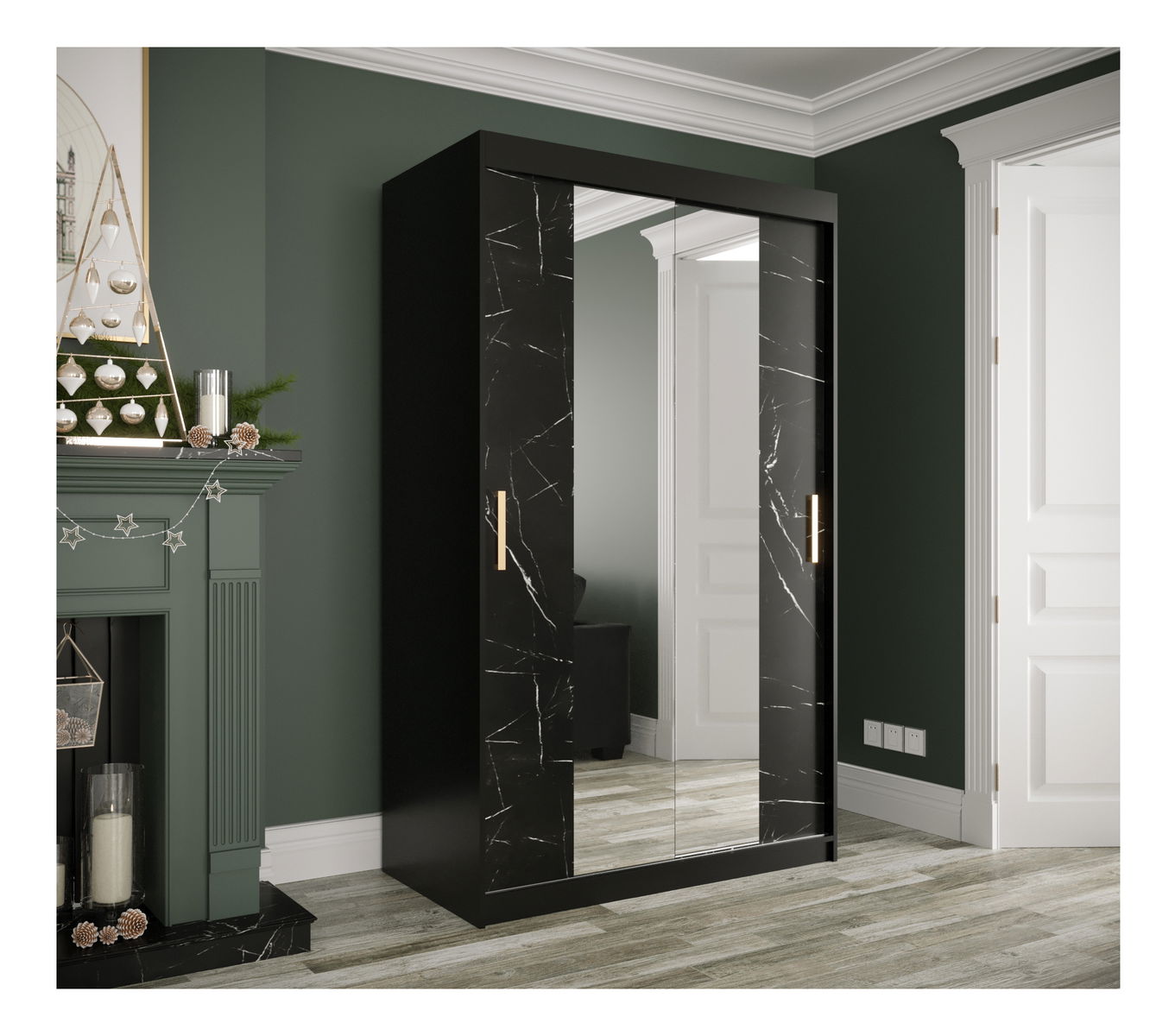 ZobraziťŠatníková skriňa Marbelo T1 ponúka funkčný a moderný dizajn, ktorý bude skvelým doplnkom pre každú spálňu. Vďaka svojej matnej čiernej a čiernej mramorovej farbe a zlatým úchytom ponúka skriňa luxusný vzhľad. Zrkadlové posuvné dvere nielen osvetľujú miestnosť, ale aj poskytujú praktickú funkciu pre kontrolu oblečenia. Vnútri skrine nájdete dostatok miesta na uloženie oblečenia, obuvi a doplnkov v odolnej a elegantnej konštrukcii. Šatníková skriňa Marbelo T1 má univerzálny dizajn a dokonale zapadne do rôznych interiérov. Vylepšite estetiku a organizáciu svojej spálne s touto šatníkovou skriňou s posuvnými dverami Marbelo, ktorá prináša luxus a praktickosť v jednom kompaktnom a ohromujúcom balení.
