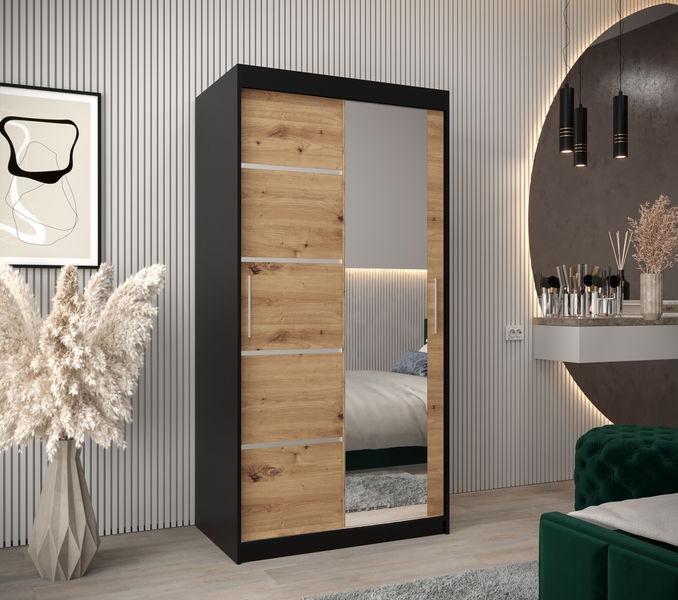 Šatníková skriňa 120 cm so zrkadlom Verika 2 120 (čierna + dub artisan)