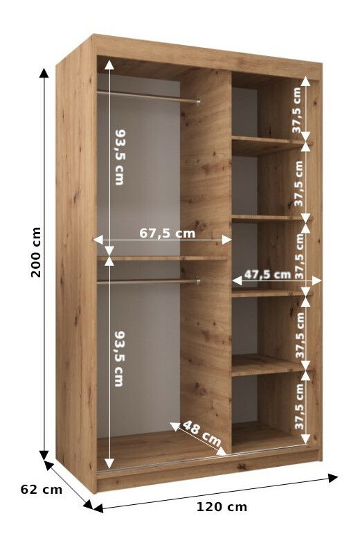 Šatníková skriňa 120 cm Spock (dub artisan)