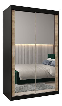 Šatníková skriňa 120 cm Toki 3 (Čierna matná + Dub sonoma)