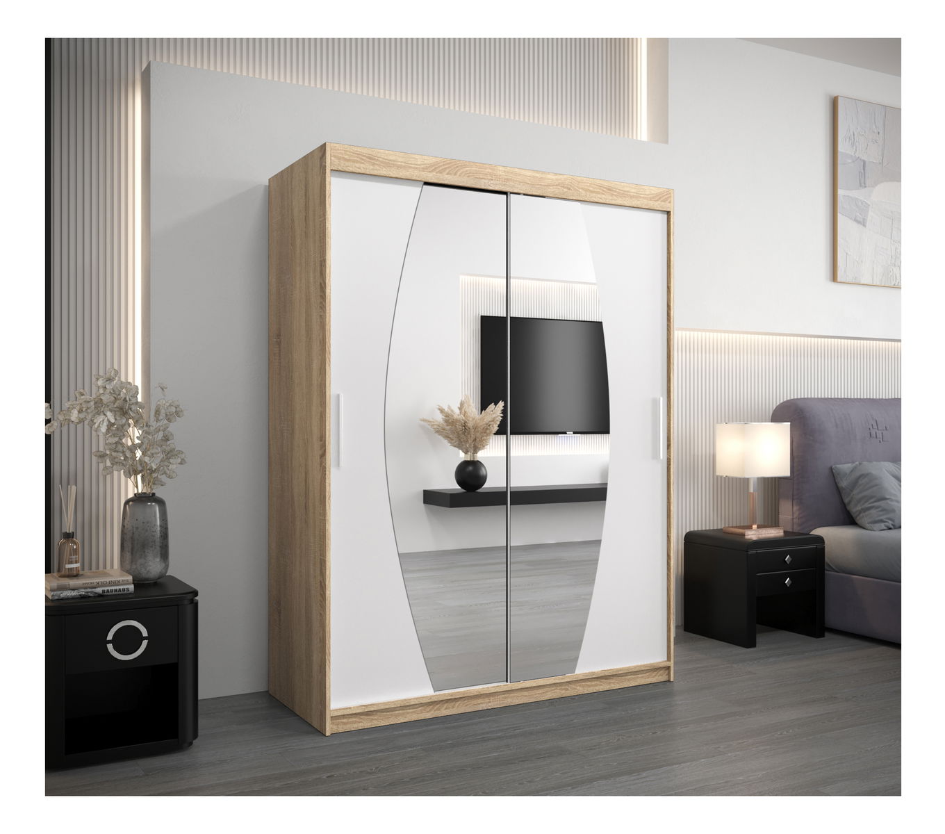 Šatníková skriňa 150 cm Eclipse (dub sonoma + biela matná)
