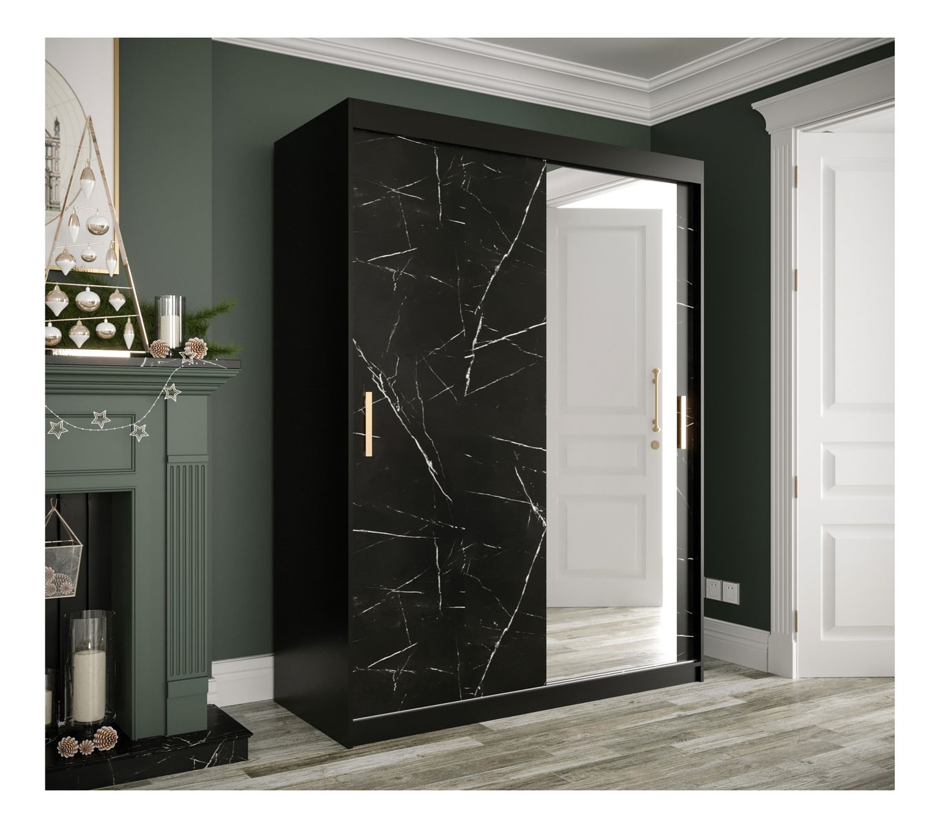 Šatníková skriňa 150 cm Marbelo T2 (matná čierna + čierny mramor)