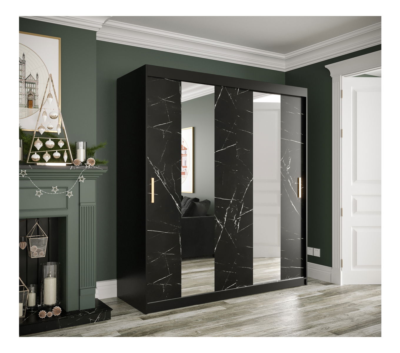 Šatníková skriňa 180 cm Marbelo P (matná čierna + čierny mramor)