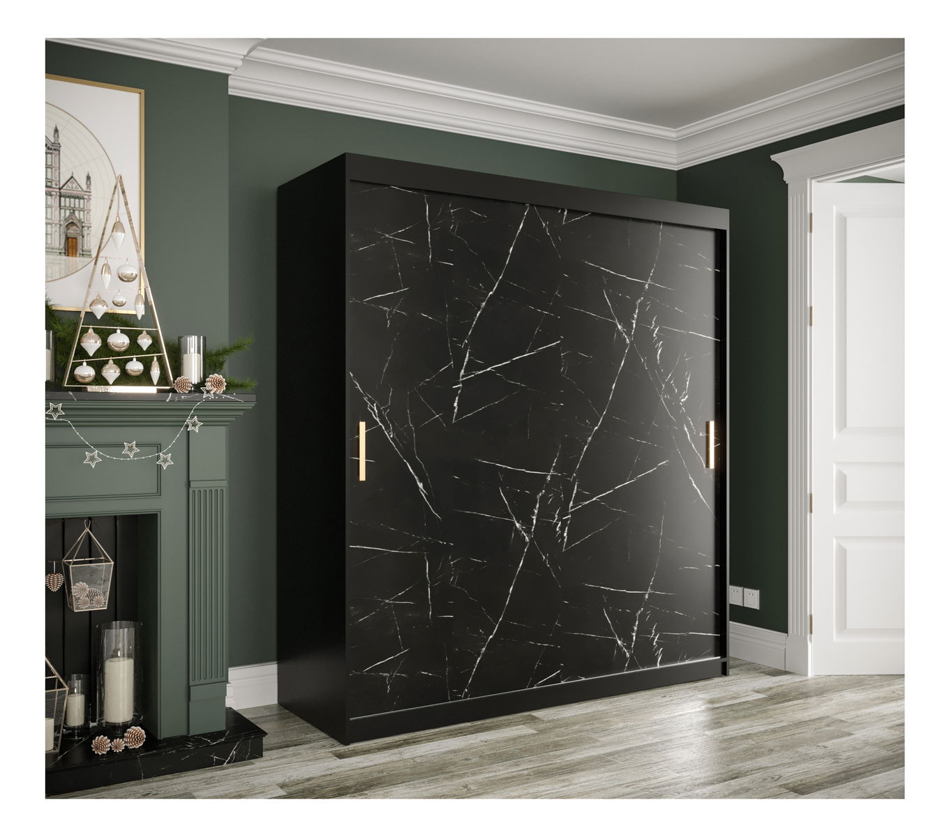 Šatníková skriňa 180 cm Marbelo T (matná čierna + čierny mramor)