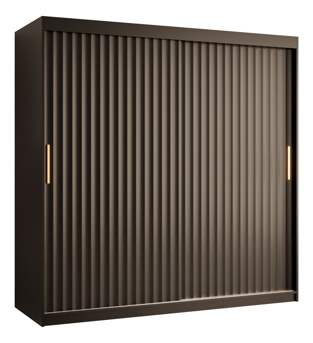 Táto elegantná šatníková skriňa s posuvnými dverami má šírku 180 cm, výšku 200 cm a hĺbku 62 cm. Jej matný povrch v čiernej farbe dodáva skriňe moderný vzhľad. Je vyrobená z kvalitnej 16 mm laminovanej dosky a má ABS hrany s hrúbkou 0,5 mm, ktoré zaisťujú jej dlhú životnosť a odolnosť voči opotrebeniu. Táto šatníková skriňa ponúka dostatok miesta na uloženie vašich šiat a doplnkov. Vaša spálňa bude vyzerať elegantne a štýlovo.