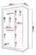 Korpus: 16 mm hrubá laminovaná doska, čelá: 18 mm MDF doska s viditeľným frézovaním, hrany upravené trvanlivou PVC dýhou odolnou voči poškodeniu, posuvné dvere na hliníkových klzákoch od spoločnosti "BIMAK", plastové rukoväte zlatej farby, leštené zrkadlo na prednej strane, interiér s policami a vešiakmi na oblečenie