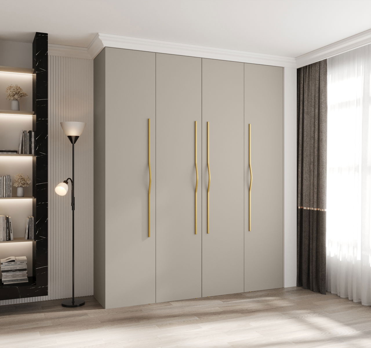 Šatníková skriňa 200 cm Carmela 40-2 (kašmír + zlatá)