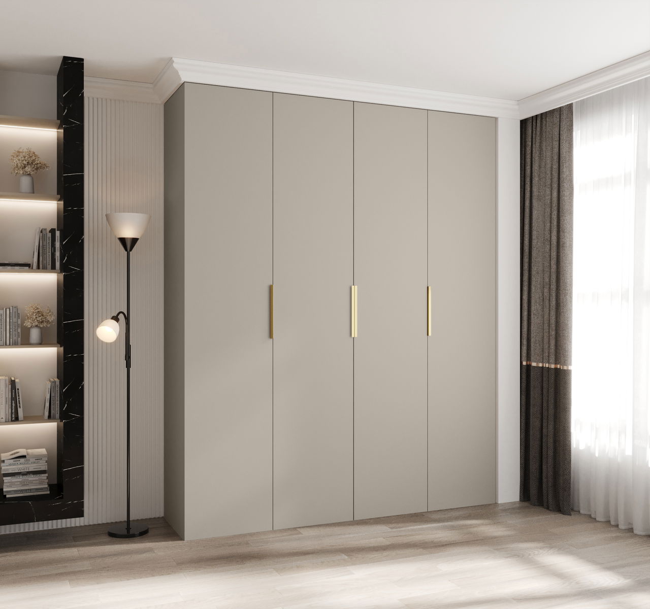 Šatníková skriňa 200 cm Carmela 40-4 (kašmír + zlatá)