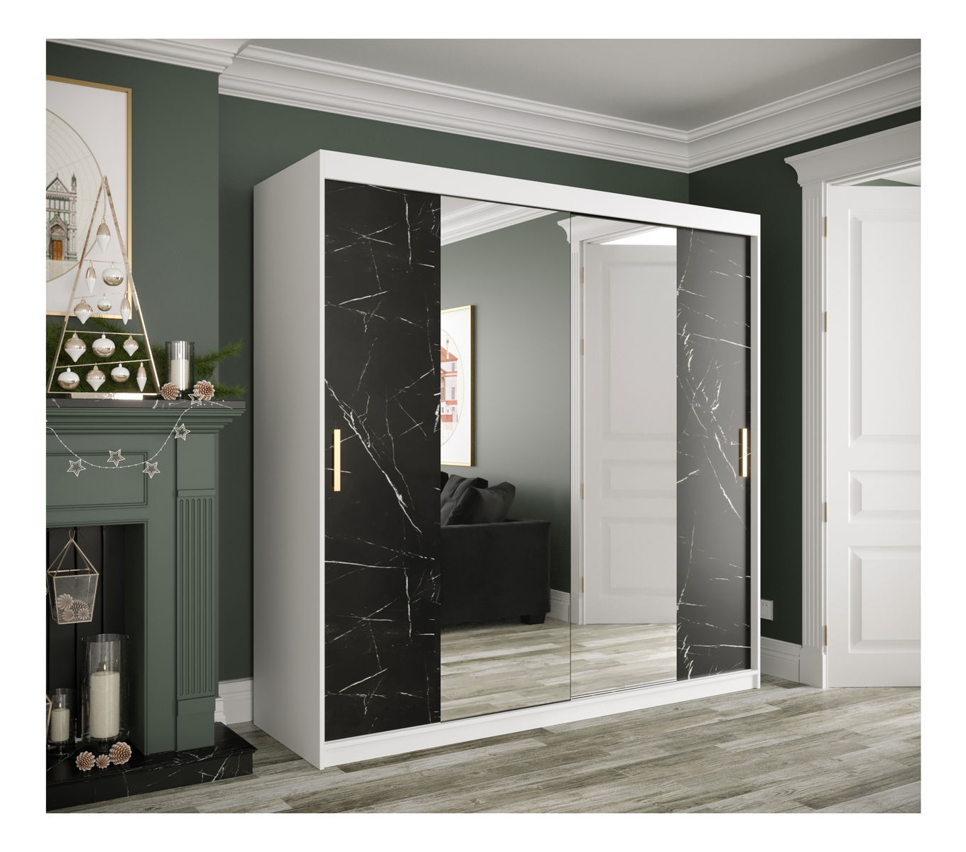Šatníková skriňa 200 cm Marbelo T1 (matná biela + čierny mramor)