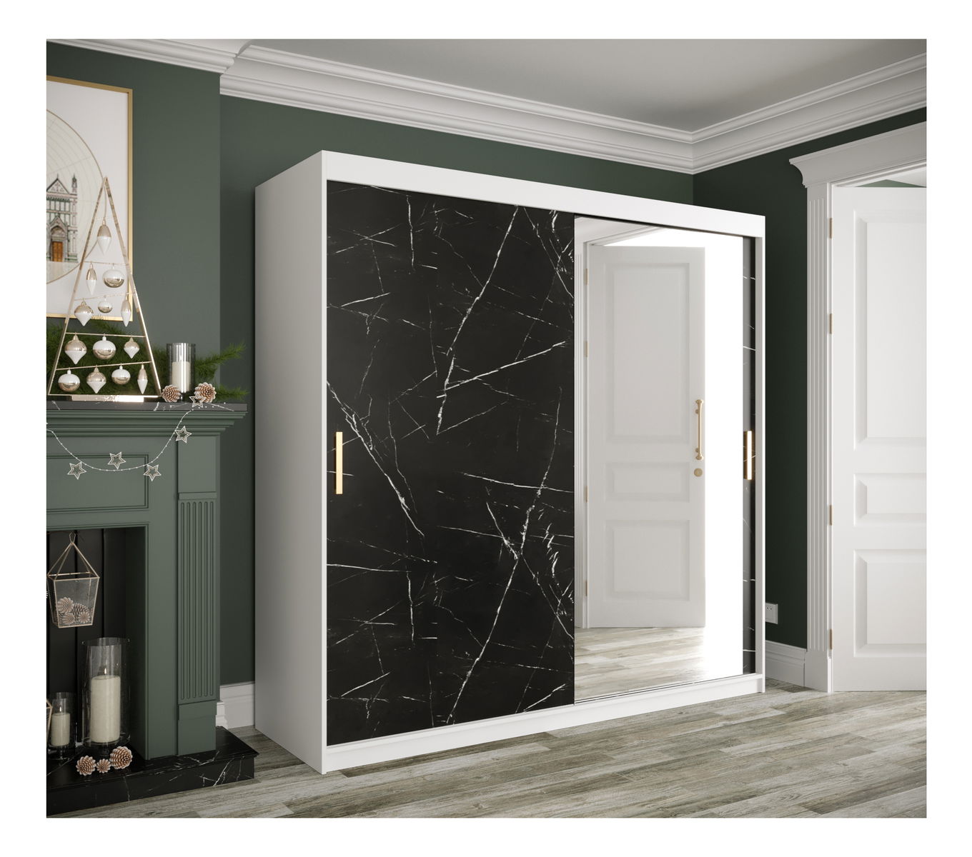 Šatníková skriňa 200 cm Marbelo T2 (matná biela + čierny mramor)