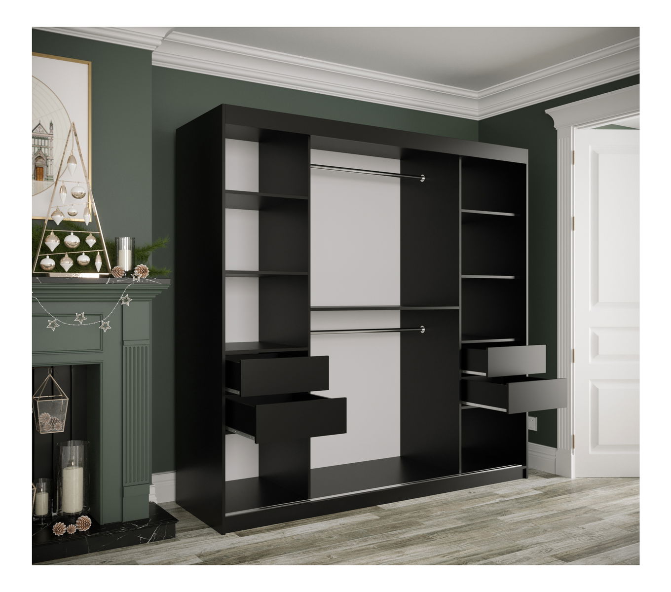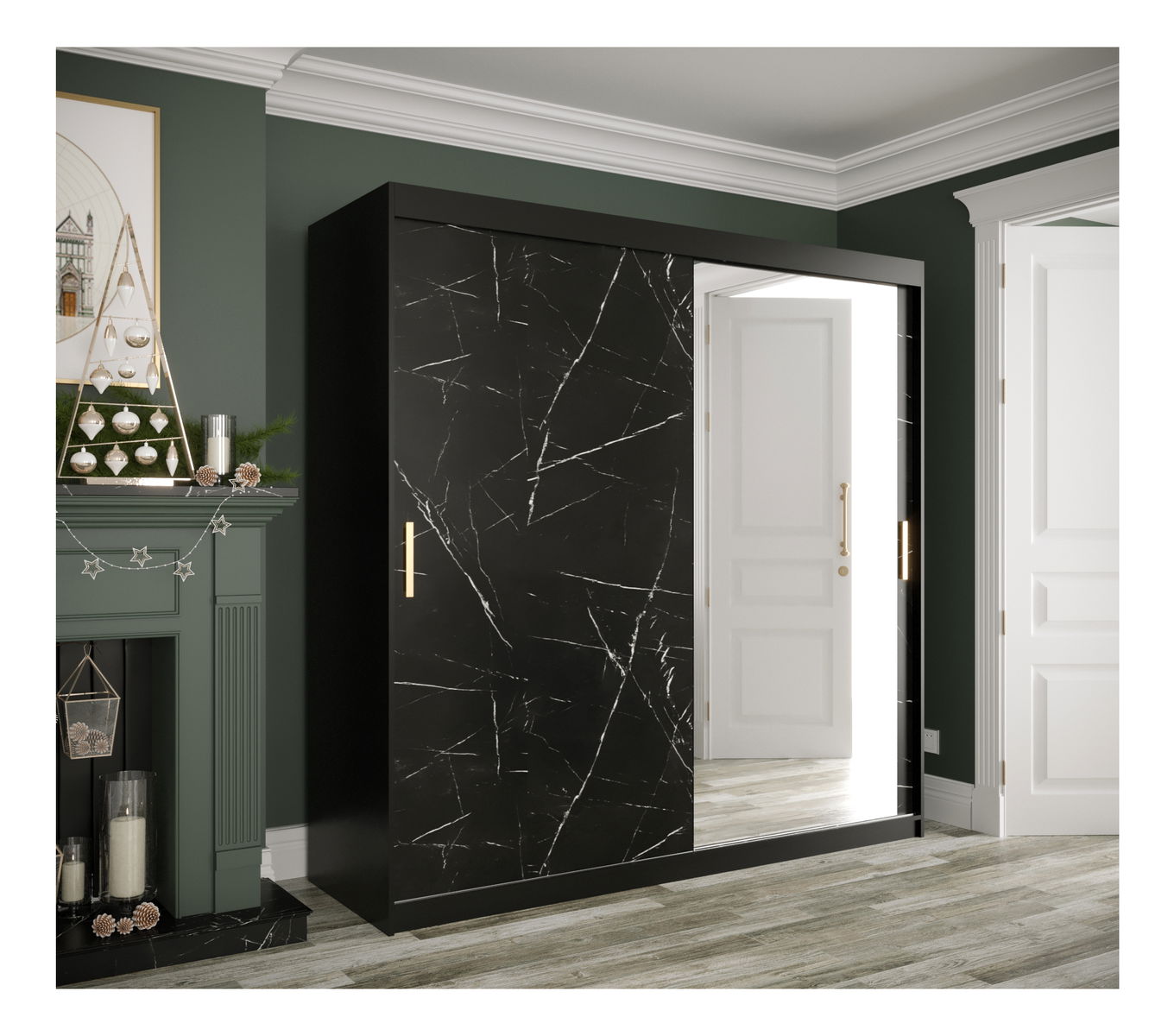 Šatníková skriňa 200 cm Marbelo T2 (matná čierna + čierny mramor)