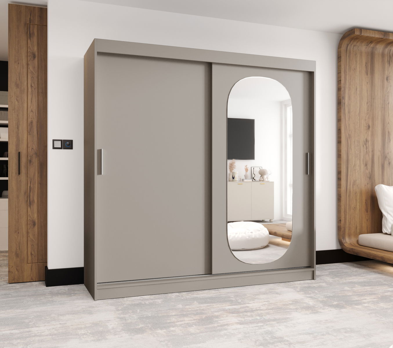 ZobraziťŠatníková skriňa s posuvnými dverami a zrkadlom Ronny je vyrobená v modernom, no zároveň nadčasovom štýle. K dispozícii v štyroch farbách a šiestich rôznych veľkostiach.
