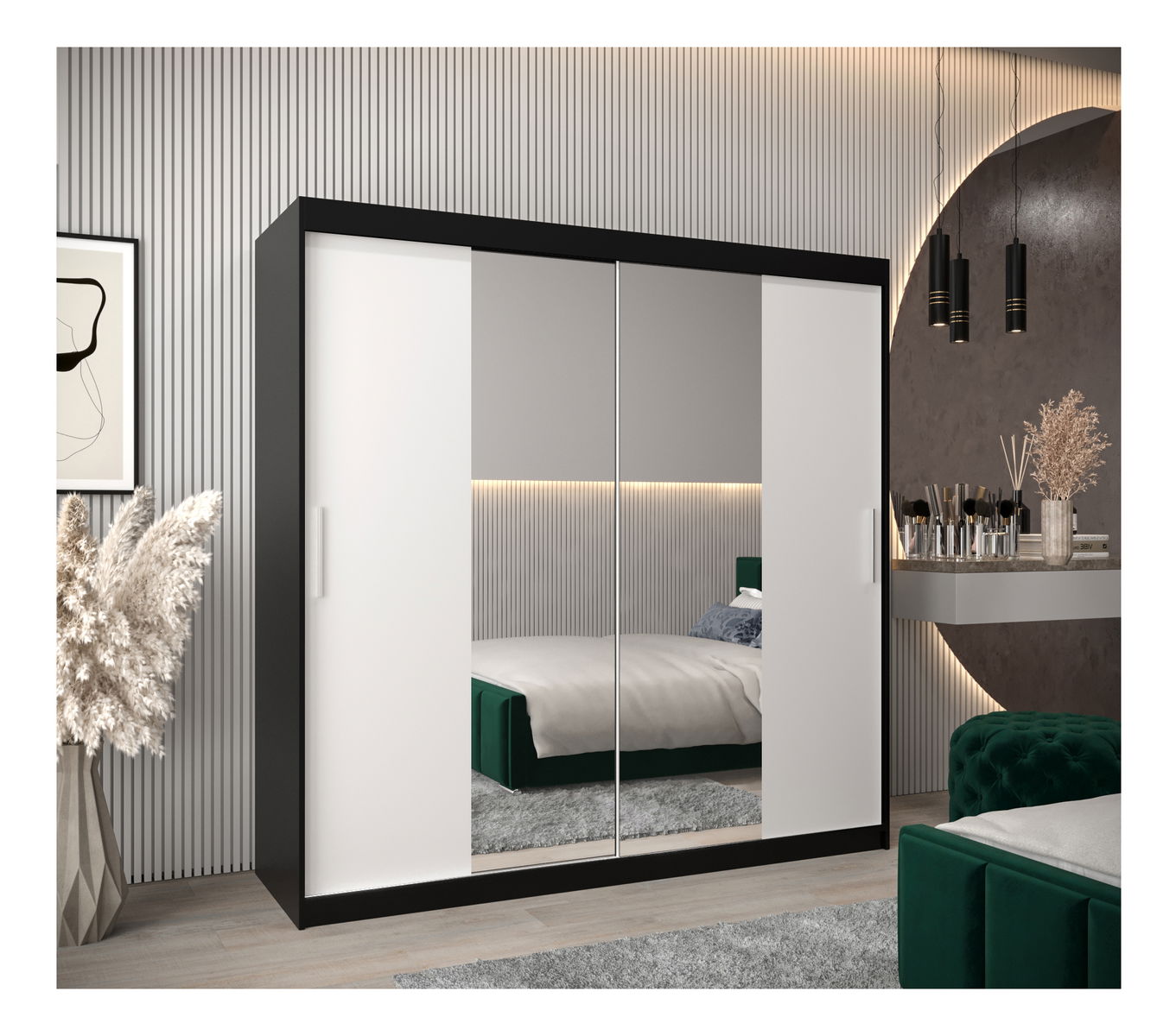 Šatníková skriňa 200 cm Toki 1 (Čierna matná + Biela matná)
