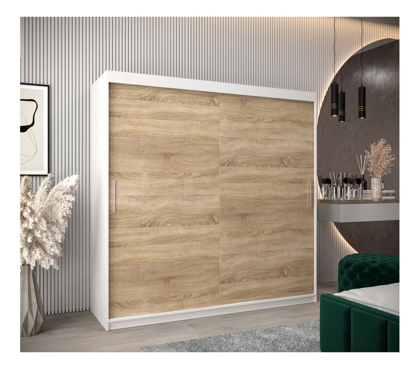 Šatníková skriňa 200 cm Toki (Biela matná + Dub sonoma)