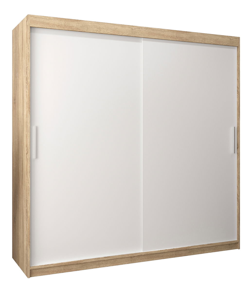 ZobraziťPredstavujeme Vám šatníkovú skriňu Toki s posuvnými dverami, ktorá je elegantným a moderným riešením pre úložný priestor v súčasnej domácnosti. Skriňa má výšku aj šírku 200 cm a hĺbku 62 cm a je vyrobená z dubu sonoma a bielych matných prvkov, čo jej dodáva štýlový a moderný vzhľad. Inovatívny posuvný systém LAGUNA zaručuje bezproblémový prístup k šatníku a skriňa je vybavená striebornými plastovými úchytkami, ktoré jej dodávajú minimalistický nádych. Táto skriňa je navrhnutá tak, aby zdôraznila váš priestor a spojila praktickosť s minimalistickou estetikou. Ľahko si v nej zorganizujete svoje nevyhnutné veci a dodáte svojej izbe nádych modernej elegancie. Šatníková skriňa s posuvnými dverami Toki je ideálnym riešením pre tých, ktorí hľadajú štýlové úložné priestory bez kompromisov v jednoduchosti.