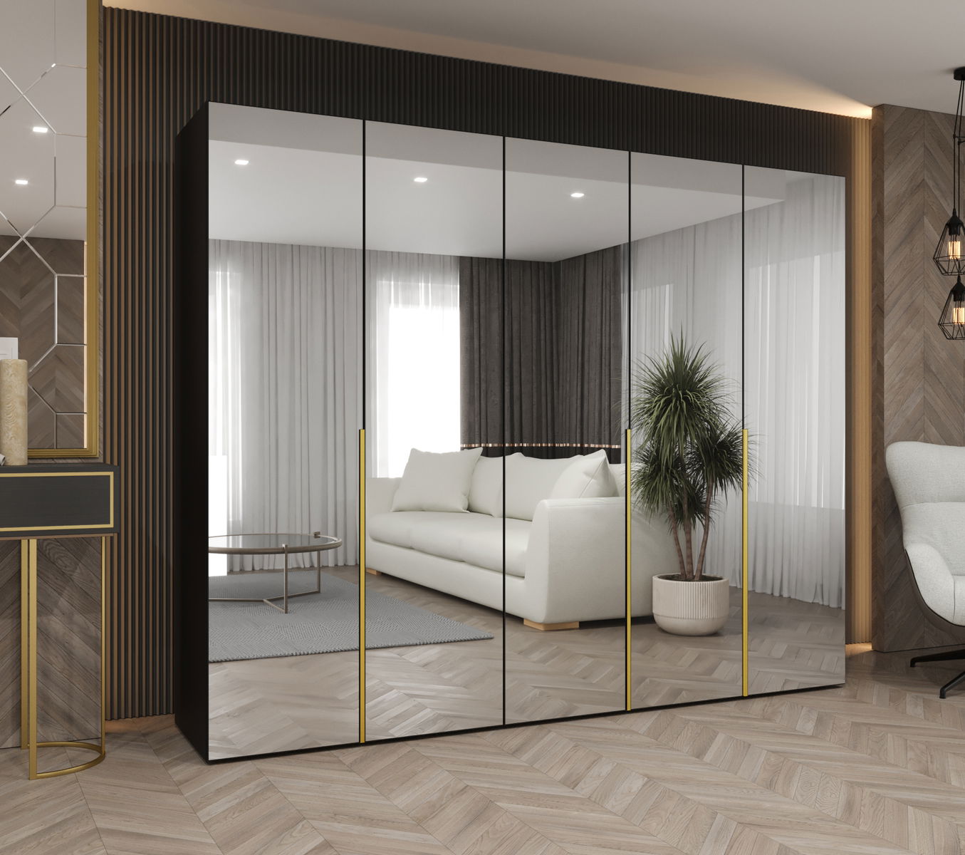 Šatníková skriňa 250 cm Alice 3 (čierna + zlatá)