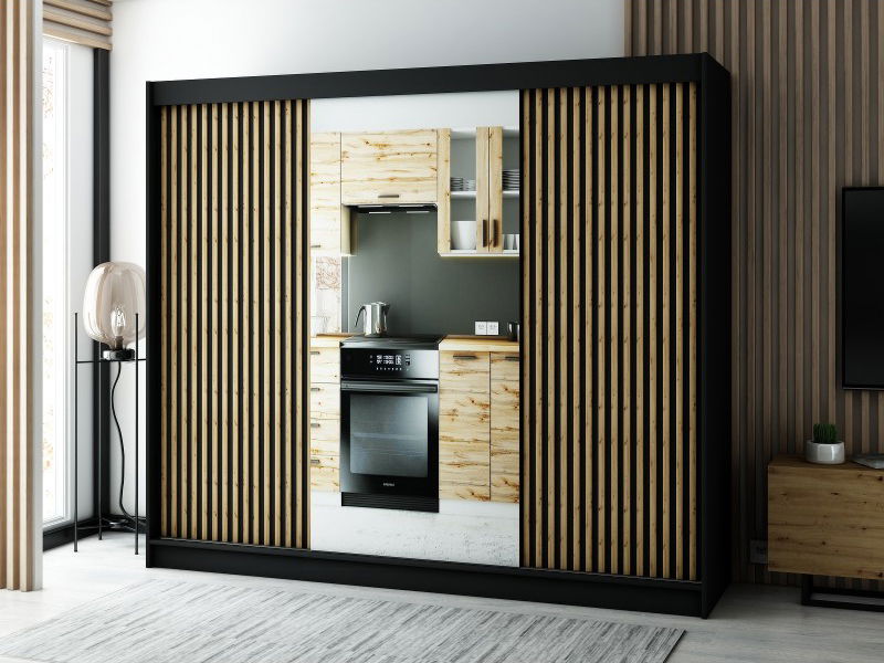 - Šatníková skriňa 250 cm Ladonna 2 (čierna matná) (so zrkadlom)