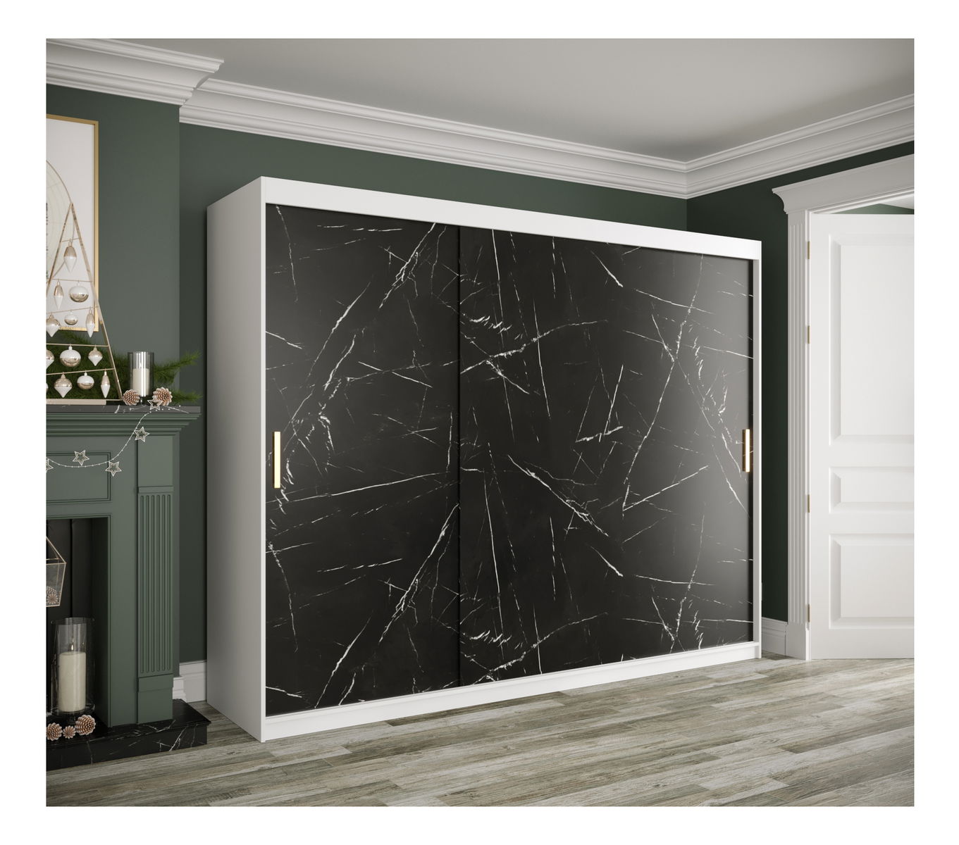 Šatníková skriňa 250 cm Marbelo T (matná biela + čierny mramor)