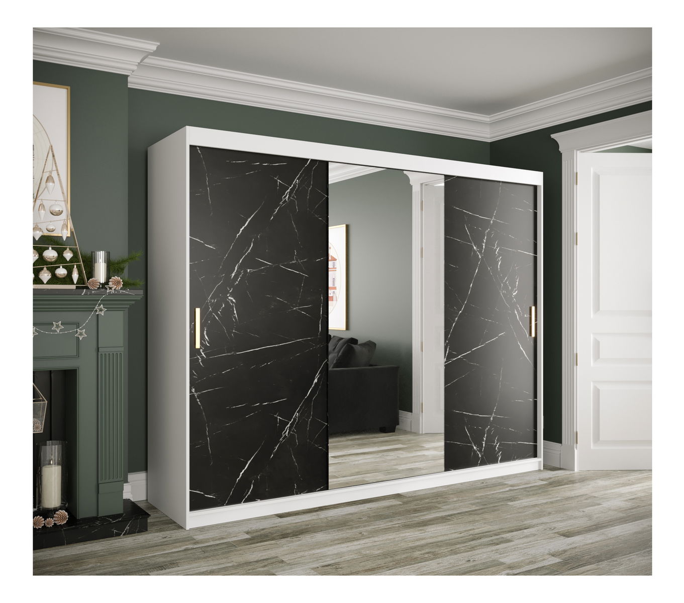 Šatníková skriňa 250 cm Marbelo T1 (matná biela + čierny mramor)