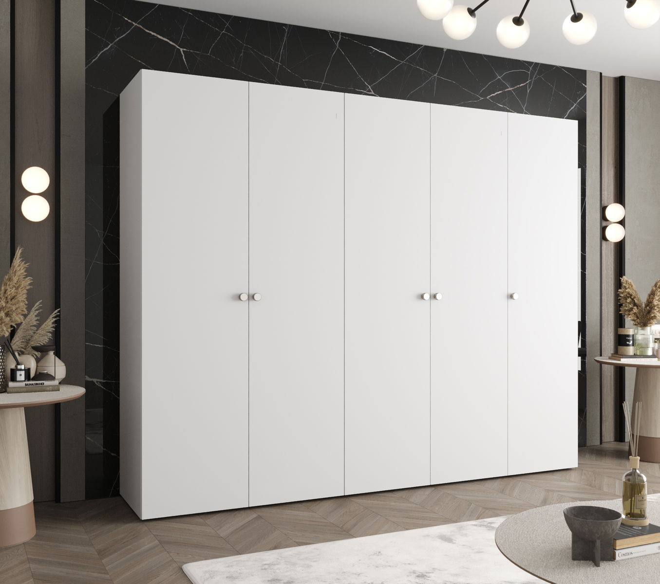 Šatníková skriňa 250 cm Parna 1 (biela + strieborná)