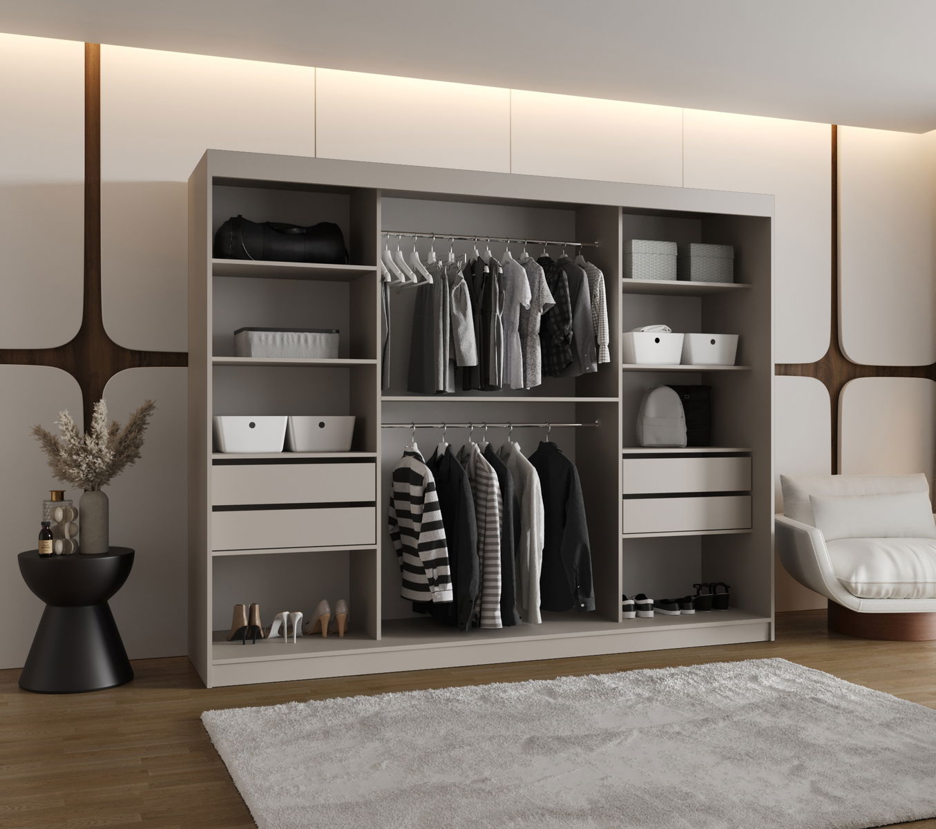 ZobraziťŠatníková skriňa s posuvnými dverami a zrkadlom Spock je vyrobená v modernom, no zároveň nadčasovom štýle. K dispozícii v štyroch farbách a šiestich rôznych veľkostiach.