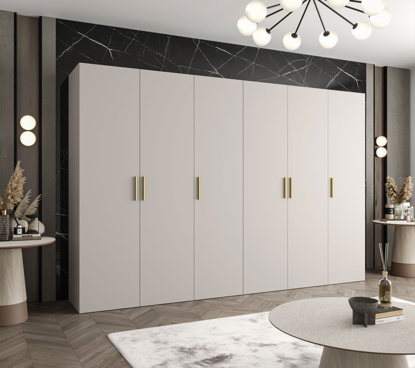 Šatníková skriňa 300 cm Borry 1 (kašmír + zlatá)