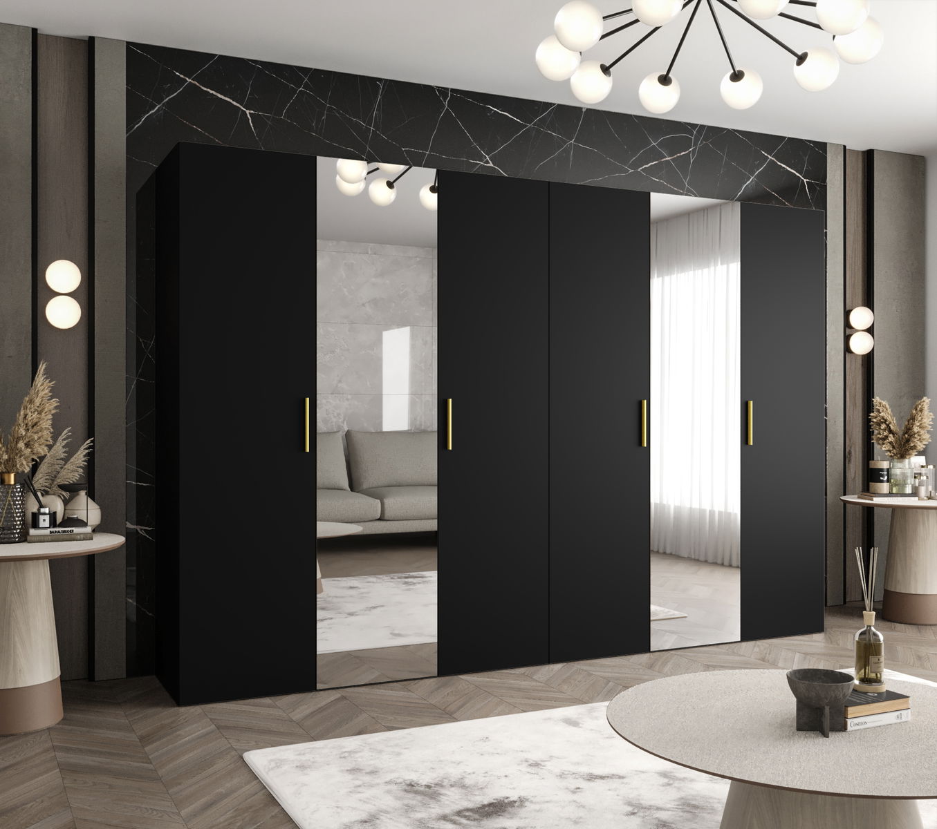 Šatníková skriňa 300 cm Borry 2 (čierna + zlatá)