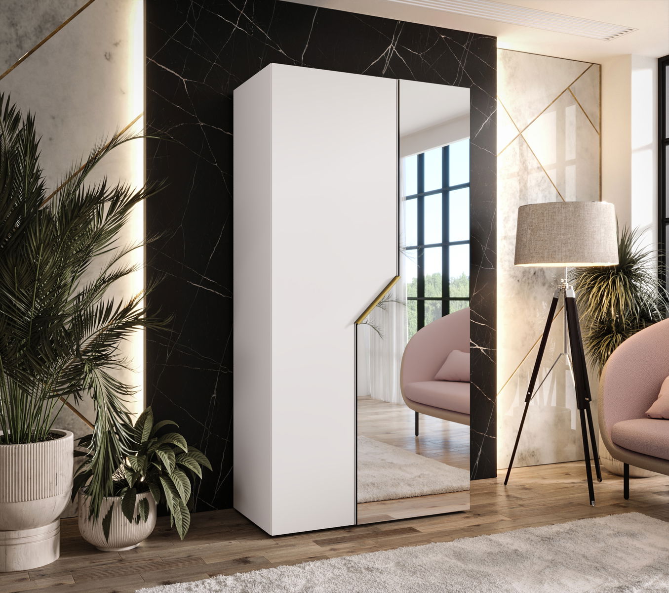 Šatníková skriňa Alaris 2 100 (biela + zlatá) (so zrkadlom)