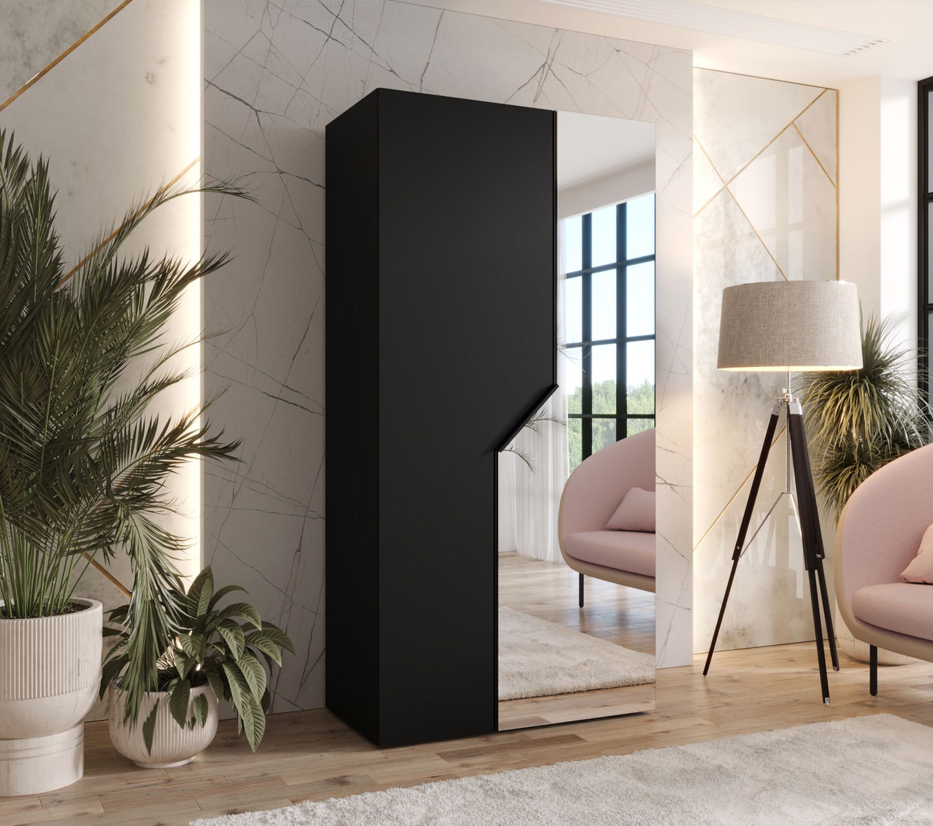 Šatníková skriňa Alaris 2 100 (čierna) (so zrkadlom)