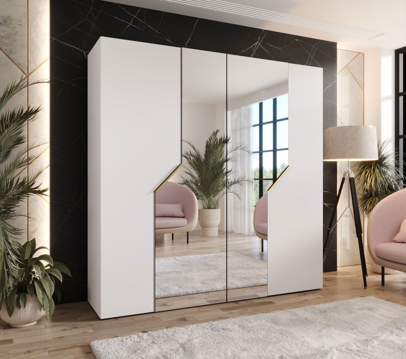 - Šatníková skriňa Alaris 2 200 (biela + zlatá) (so zrkadlom)