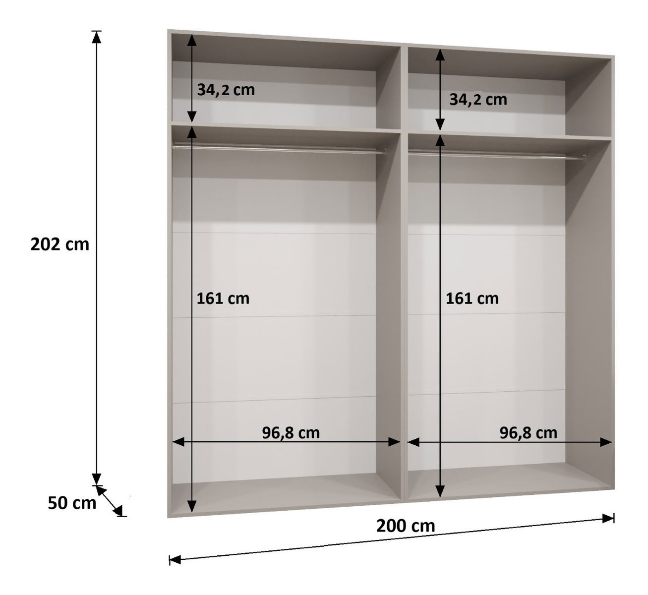 Šatníková skriňa Alaris 2 200 (čierna) (so zrkadlom)