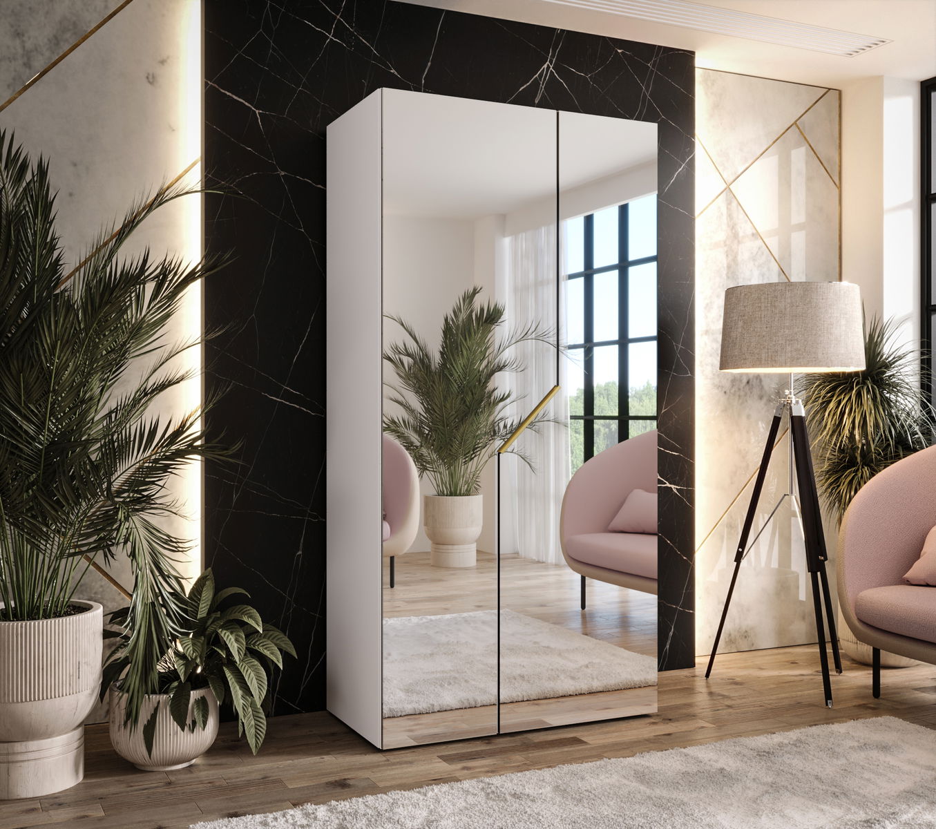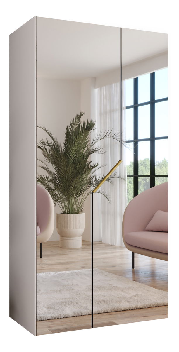 Šatníková skriňa Alaris 3 100 (biela + zlatá) (so zrkadlom)