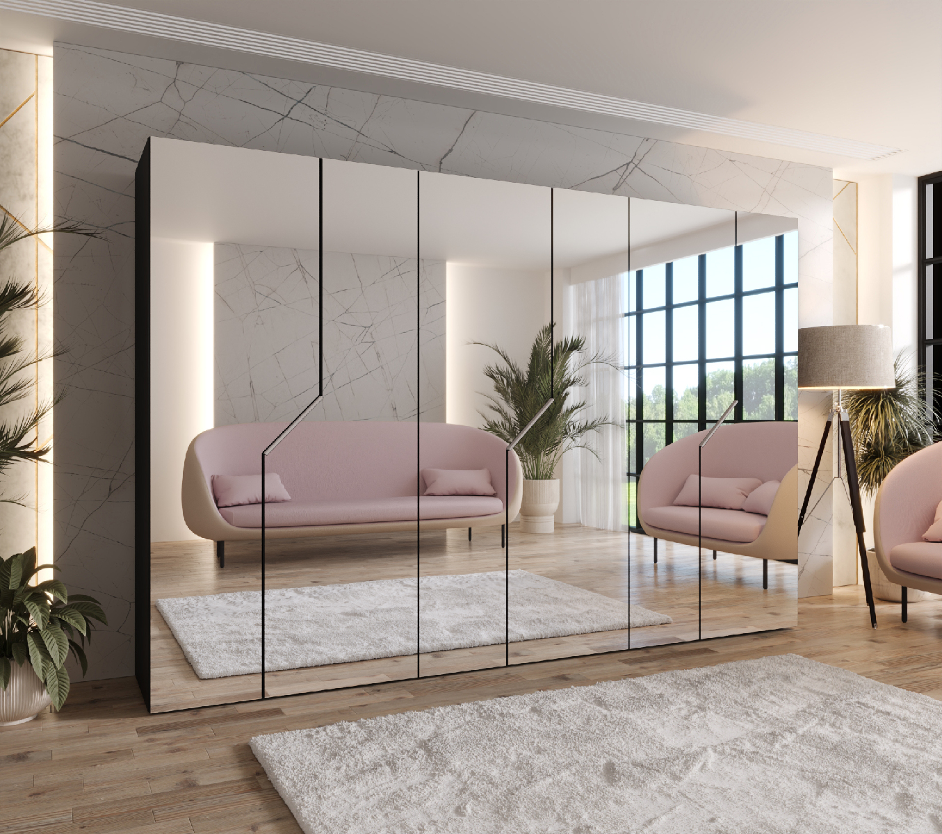 Šatníková skriňa Alaris 3 300 (čierna + kašmír) (so zrkadlom)
