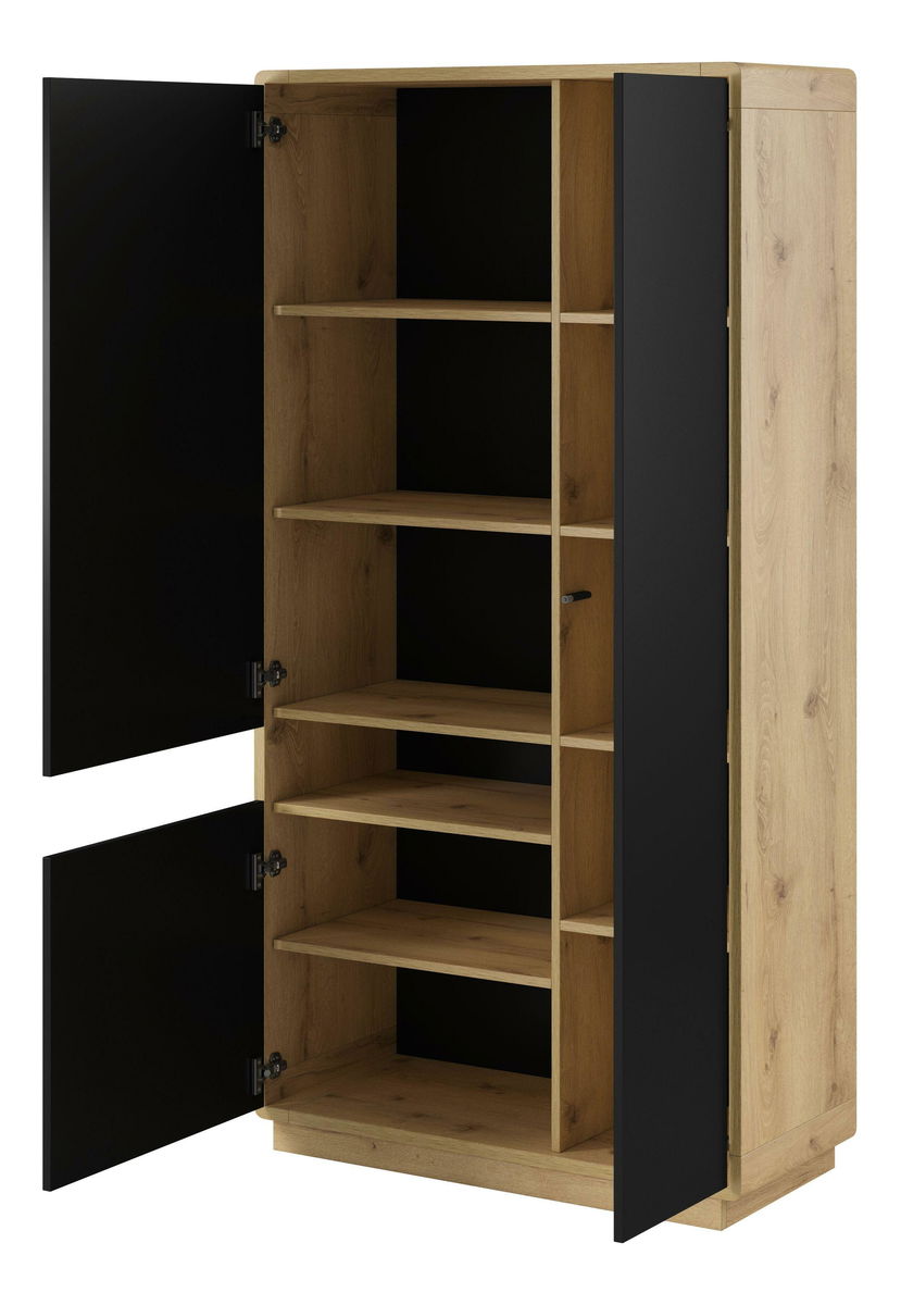 Vysoká komoda Albert Typ 13 (dub taurus + čierna matná) má výšku 180 cm a hĺbku 40 cm. Je rozdelená na dve časti, pričom ľavá časť obsahuje otvorenú zásuvku pre jedinečný vzhľad a eleganciu. Hladké línie nábytku sú ideálne pre vašu kreativitu a doplnky ako vankúše, vázy, kvety a obrazy dotvoria dokonalý vzhľad vášho obývacieho priestoru. Povrchová úprava frontu je lamino, vnútorné zloženie frontu je z drevotriesky a hrúbka frontu je 15 mm. Korpus má tiež lamino povrchovú úpravu, vnútorné zloženie je z drevotriesky a hrúbka korpusu je 15 mm. Komoda sa dodáva v demonte.
