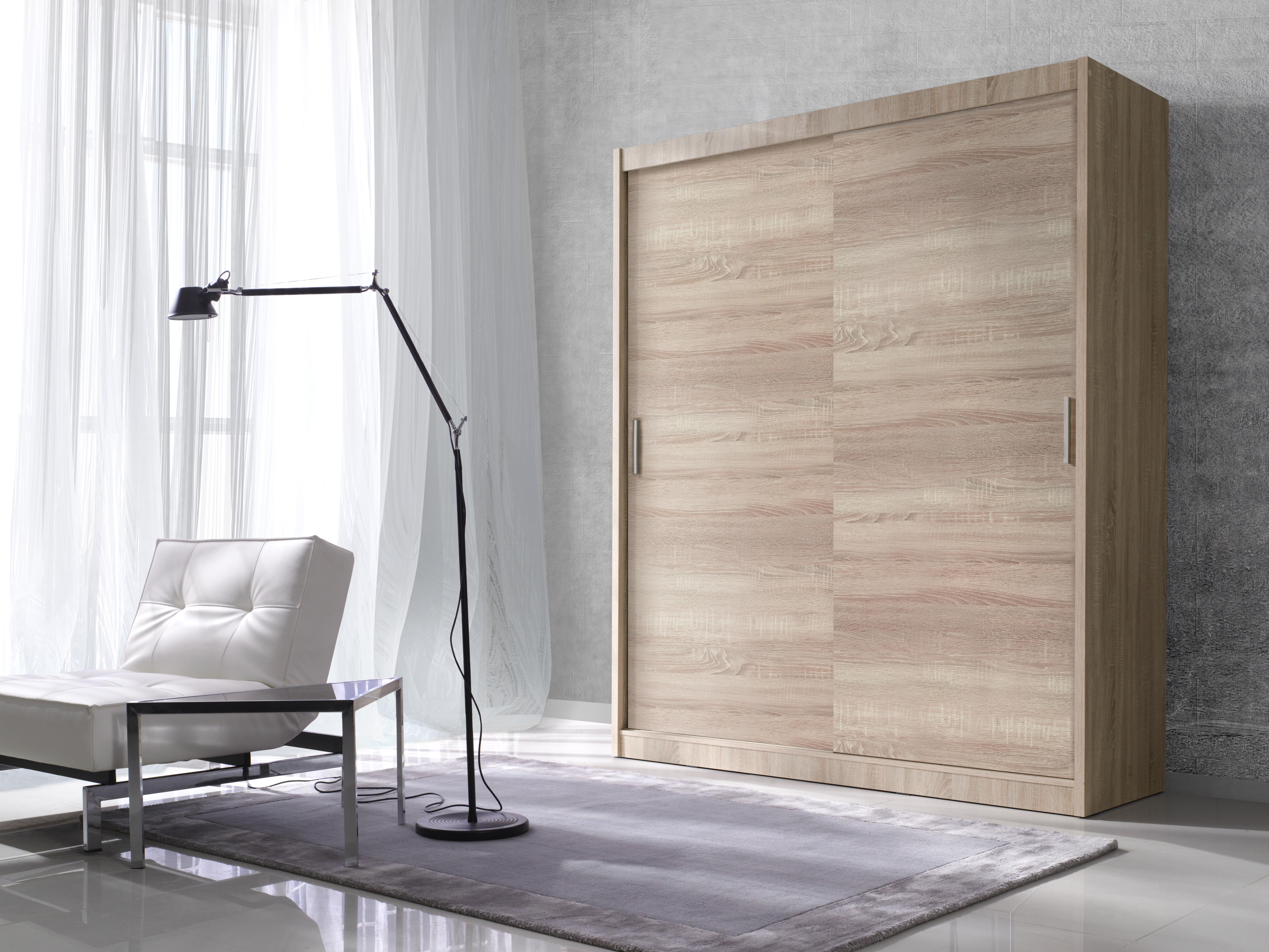 Šatníková skriňa, ktorá uspokojí aj náročnejších užívateľov. Vnútorné usporiadanie je veľmi praktické. Nachádza sa tam vešiaková tyč na zavesenie oblečenia a výškovo nastaviteľné police, ktoré si môžete usporiadať podľa svojich potrieb. Je vyrobená z kvalitnej LTD (laminovaná drevotrieska) hrúbky 15 mm. Vďaka laminátovej vrstve je odolná voči vode a mechanickému poškodeniu.