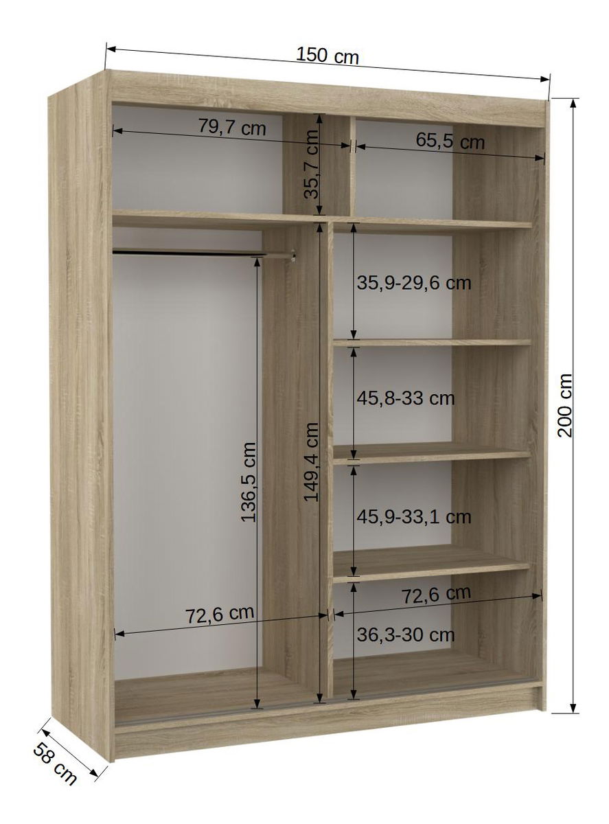ZobraziťŠatníková skriňa Arow (choco) je praktickým doplnkom každej spálne. Vďaka svojim rozmerným vlastnostiam – výška 200 cm, šírka 150 cm a hĺbka 58 cm – disponuje dostatočným úložným priestorom pre Vašu oblečenie a obuv. Skriňa je vyrobená z kvalitného materiálu, ktorý zaručuje jej dlhú životnosť a odolnosť. Okrem toho, táto skriňa disponuje zrkadlom, ktoré Vám uľahčí výber správnej kombinácie oblečenia a doplnkov. Dizajn v odtieni choco prinesie do Vašej spálne príjemnú atmosféru a útulnosť. Šatníková skriňa Arow (choco) bude perfektným riešením pre každého, kto hľadá spojenie praktickosti, kvality a moderného dizajnu.