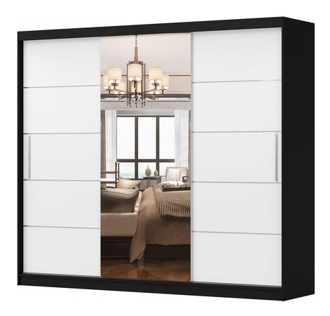 Šatníková skriňa Arrun (čierna + biela + zrkadlo)