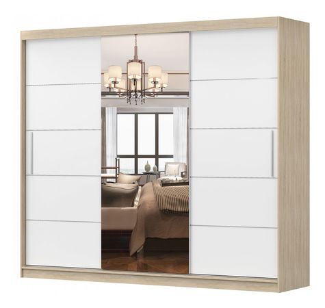 Šatníková skriňa Arrun (dub sonoma + biela + zrkadlo)