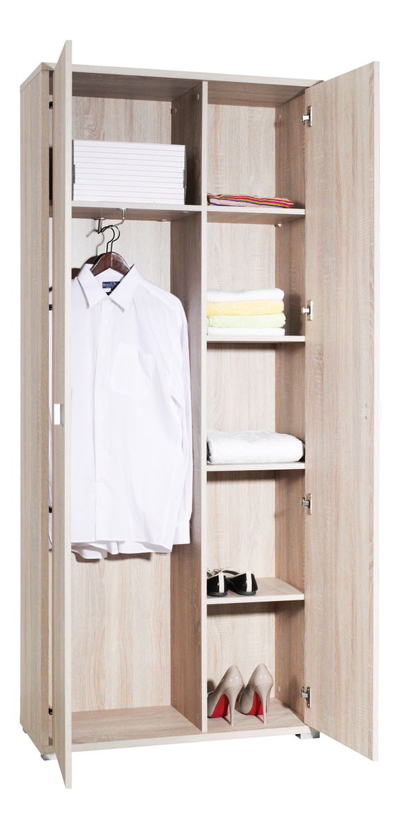 Šatníková skriňa Attical A5 je vysoká 195 cm a hlboká 34 cm s moderným dizajnom. Táto skriňa je ideálna pre každého, kto hľadá elegantné a praktické úložné riešenie pre svoje šaty a oblečenie. Skriňa je vyrobená z kvalitného laminovaného dreva v dubovom sonoma prevedení, ktoré zaručuje dlhú životnosť a odolnosť voči poškodeniu. Skriňa ponúka dostatok priestoru pre vaše oblečenie s jedným vešiakovým tyčom a štyrmi policami pre uloženie ďalších vecí. Dva z kusov sú nastaviteľné, takže si môžete prispôsobiť výšku podľa vašich potrieb. Šatníková skriňa Attical A5 je dokonalým doplnkom pre vašu spálňu alebo šatňu a bude vám slúžiť mnoho rokov.