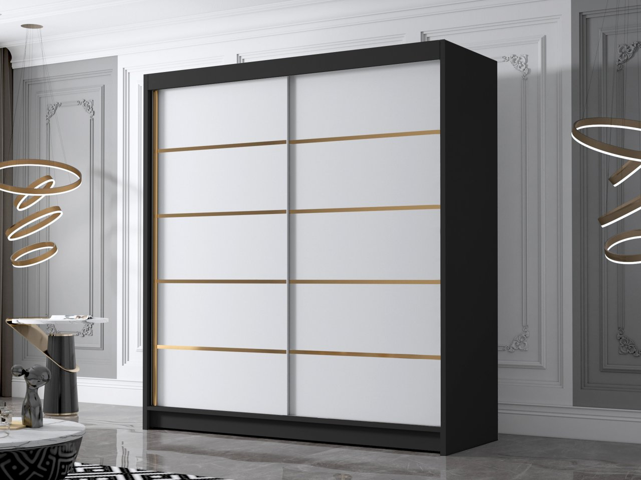 Táto posuvná skriňa kombinuje moderný dizajn s praktickosťou, ideálna pre každú miestnosť. Vyrobená z laminátu s hrúbkou 16 mm, zaručuje pevnosť a odolnosť. Jej jedinečný posuvný otvárací systém LAGUNA na dolnej kolajnici umožňuje plynulé a tiché otváranie. Skriňa má dvoje dvere, pozdĺžne rukoväte pre elegantný vzhľad a PVC lemovanie pre zvýšenú odolnosť. Namiesto tradičných nôh sú použité klzáky, ktoré uľahčujú pohyb a umiestnenie skrine.