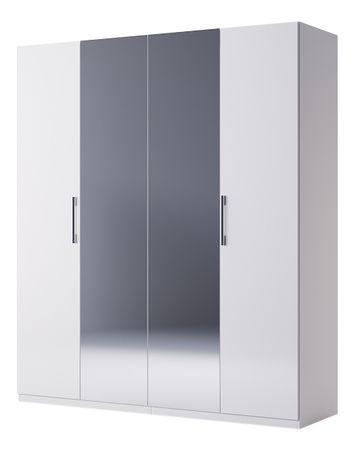 Veľká šatníková skriňa so zrkadlom vhodná ku skriniam z radu Babylon. Skriňa je tvorená z dvoch skríň, ktoré sú k sebe primontované. Každá skriňa má vo vnútri hornú policu a chrómovú tyč na zavesenie ramienok. Tyč je vedená zľava doprava a poslúži na zavesenie dlhých šiat a kabátov. Skrine sú kvôli zrkadlovým dverám, ktoré vytvárajú jedno veľké zrkadlo k sebe otočené oproti sebe. Krajné dvere majú podlhovastú úchytku v striebornej farbe. Po otvorení krajných dverí si viete otvoriť aj tie zrkadlové. Skriňa je voľne stojaca bez nožičiek. K tejto skrini si viete dokúpiť aj dvojdvierkovú nadstavbu na vrch. Farba korpusu je biela a dvere má biele vo vysokom lesku. Hrany nábytku sú chránené PVC a ABS hranou.