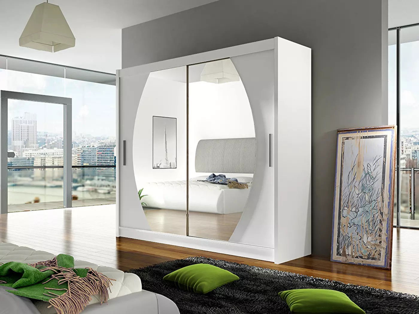 ZobraziťŠatníková skriňa Baker IV (biela) s výškou 215 cm a hĺbkou 58 cm je ideálnym kúskom nábytku pre vašu spálňu. Táto skriňa dodá vašej izbe eleganciu a štýl. Jej dominantným prvkom je zaoblené zrkadlo uprostred skrine. Po otvorení posuvných dverí zistíte, že táto skriňa ponúka dostatok priestoru pre vaše oblečenie. Skriňa obsahuje vešiakovú tyč na vaše oblečenie v ľavej časti a praktické police v pravej časti. Vrch skrine poskytuje ďalší úložný priestor. Skriňa je v peknom bielom prevedení s povrchovou úpravou z laminovanej drevotriesky s hrúbkou 16 mm a s ABS. Úchytky skrine majú striebornú farbu a sú v tvare obdĺžnika. Skriňa obsahuje jednu tyč na vaše oblečenie s pozdĺžnym uložením a celkovým počtom piatich poličiek - jednou na ľavej strane a štyrmi na pravej.