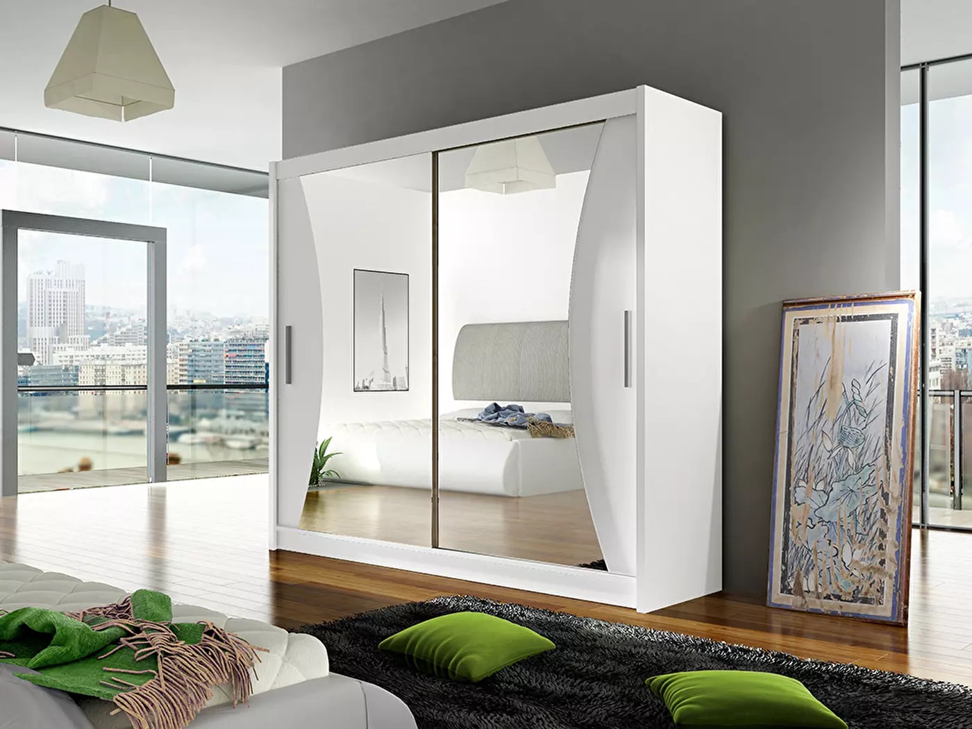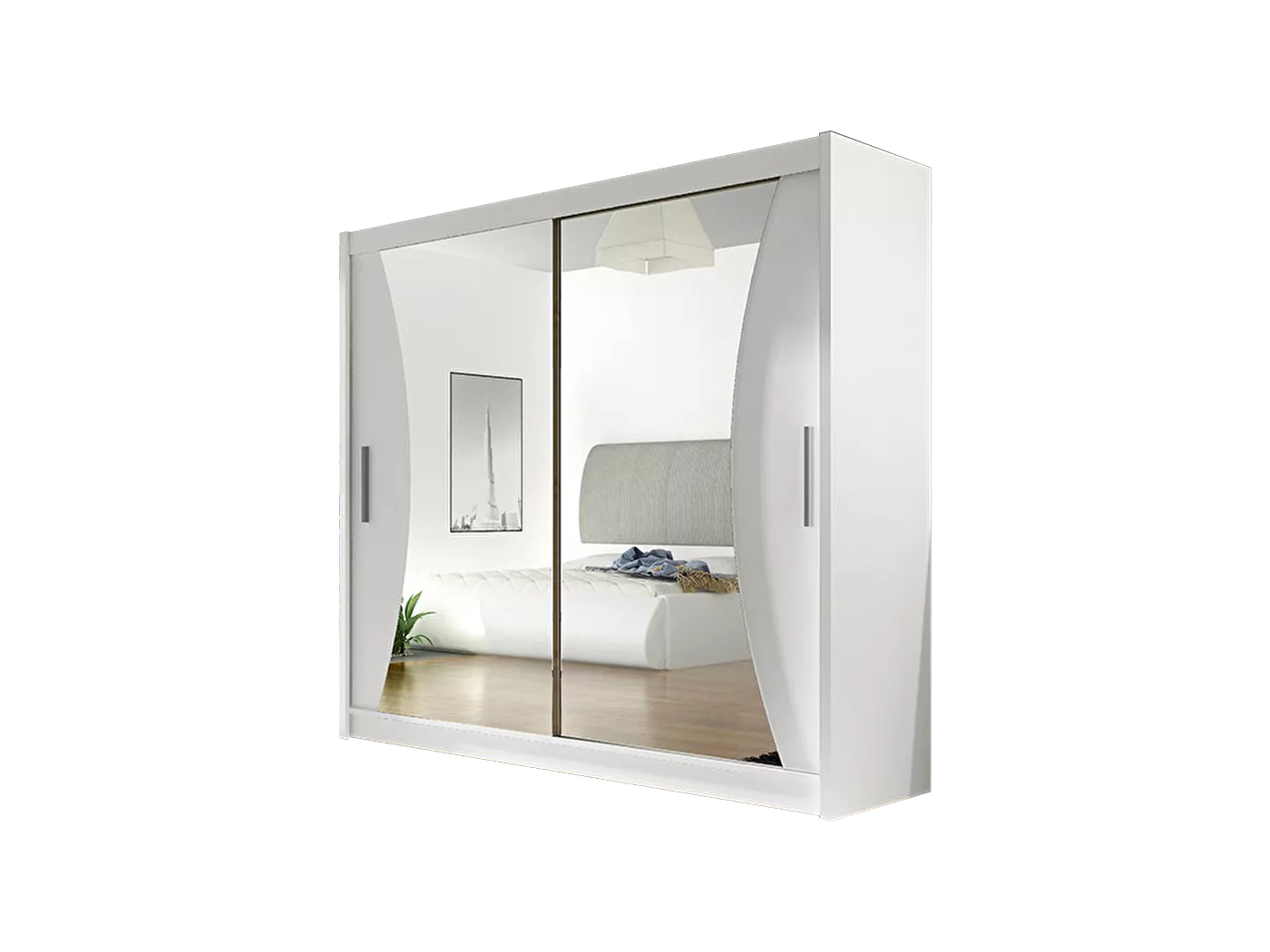 Šatníková skriňa Baker V (biela) s výškou 215 cm a hĺbkou 58 cm je praktickým doplnkom každej spálne. Jej jednoduchý dizajn s tvarovaným zrkadlom v strede a posuvné dvere vytvárajú elegantný vzhľad. Skriňa poskytuje veľa miesta na uloženie vášho oblečenia a doplnkov vďaka vešiakovej tyči na ľavej strane a policám na pravej. Vrch skrine poskytuje ďalší úložný priestor. Skriňa je vyrobená z laminovanej drevotriesky s hrúbkou 16 mm, s povrchovou úpravou v peknej bielej farbe. Systém posuvných dverí a pevne namontované vodidlá zabezpečujú pohodlie a ľahké otváranie skrinky. Šatníková skriňa Baker V je dodávaná v dvoch balíkoch a neobsahuje osvetlenie.