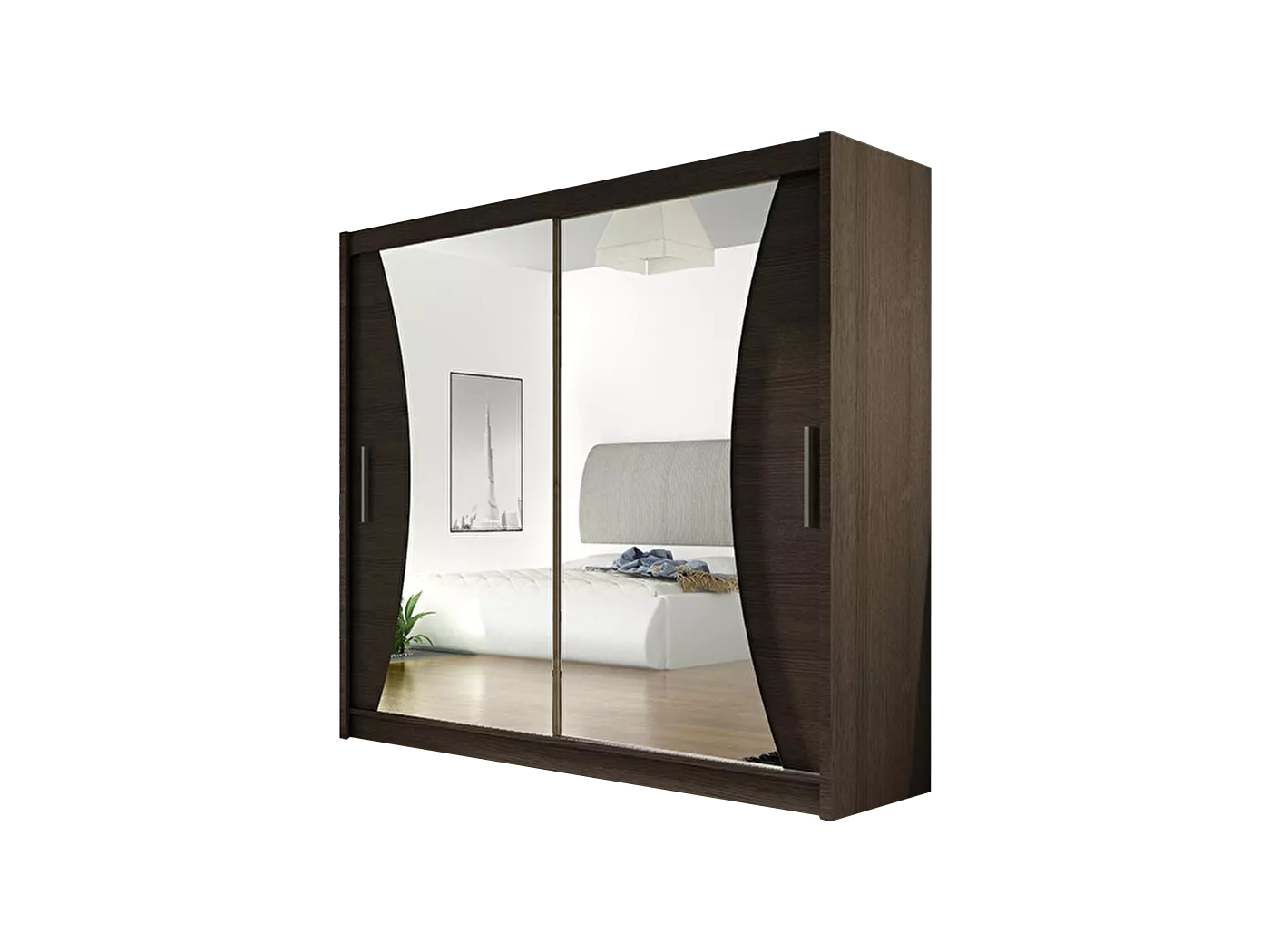 Šatníková skriňa Baker V (choco) s výškou 215 cm a hĺbkou 58 cm je ideálnou voľbou pre tých, ktorí hľadajú elegantnú a funkčnú skriňu na odkladanie svojho oblečenia a doplnkov. Skriňa má jednoduchý dizajn s tvarovaným zrkadlom uprostred, ktoré dokonale podčiarkuje jej eleganciu. Posuvné dvere skrine odkrývajú dostatok priestoru na uloženie vášho oblečenia a iných vecí. Na ľavej strane skrine sa nachádza vešiaková tyč, zatiaľ čo na pravej strane sú police. V hornej časti skrine sa nachádza ďalší úložný priestor. Skriňa je vo farebnom prevedení choco, a vďaka systému posuvných dverí sa pohodlne otvára a zatvára. Pevne namontované vodidlá zabezpečujú hladké otváranie skrinky. Korpus aj predná doska sú vyrobené z laminovanej drevotriesky s hrúbkou 16 mm a s ABS povrchovou úpravou. Úchytky majú obdĺžnikový tvar a sú striebornej farby, pripevnené pomocou skrutiek. Skriňa obsahuje 1 vešiakovú tyč a 5 policiek. Skriňa je dodávaná v 2 balíkoch s celkovou váhou 76 kg a 57-64 kg. Osvetlenie nie je zahrnuté v cene.