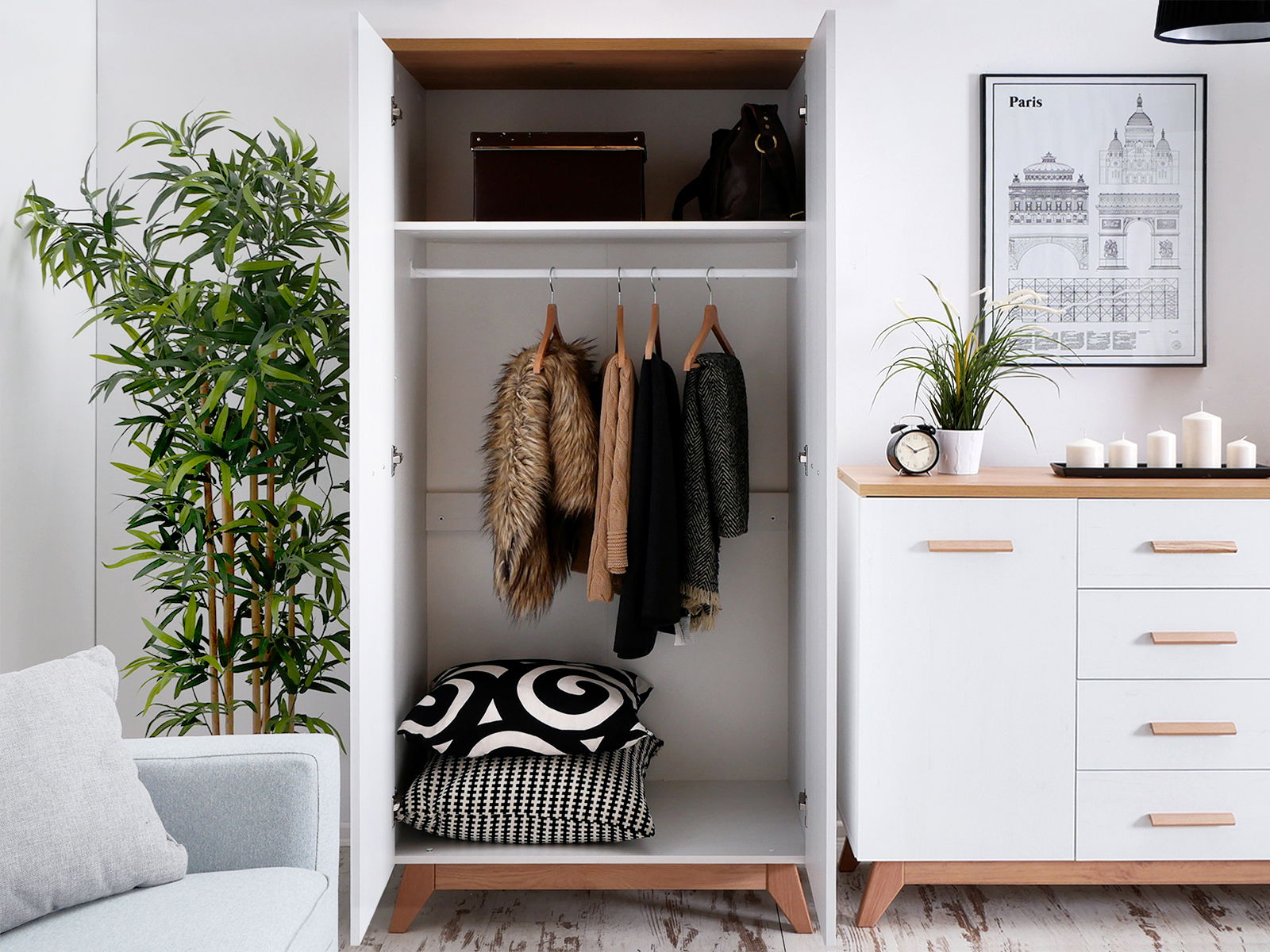 Šatníková skriňa Balones BG01 (biela + dub)
