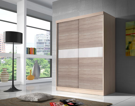 Šatníková skriňa Balor (dub sonoma + dub sonoma + biele sklo)