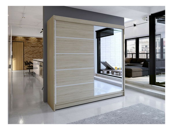 ZobraziťPriestranná posuvná skriňa je pokladom v náročnom priestore obývacej izby, spálne a predsiene. Vďaka veľkej kapacite a extrémne funkčným riešeniam je skriňa skvelá aj v šatníku. Interiér skrine je vyplnený priestrannými policami a koľajnicou na šaty na zavesenie vešiakov. Zrkadlo umiestnené na prednej strane má praktickú funkciu v interiéri - odráža svetlo, opticky zväčšuje priestor. Pomocou doplnkovej výbavy môžete skriňu vybaviť osvetlením, ktoré výrazne zvýši pohodlie pri používaní nábytku.