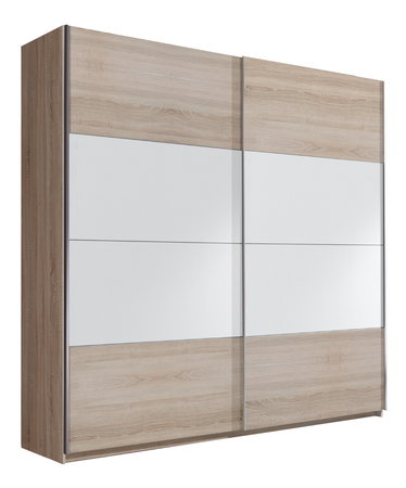 Priestranná šatníková skriňa s množstvom úložného priestoru. Mať poriadok v oblečení nebolo nikdy jednoduchšie. V pravej časti sa nachádzajú štyri poličky. Do časti ľavej si môžete na vešiakovú tyč zavesiť svoje oblečenie. Posuvné dvere šetria priestor, kedže sa neotvárajú do strany.