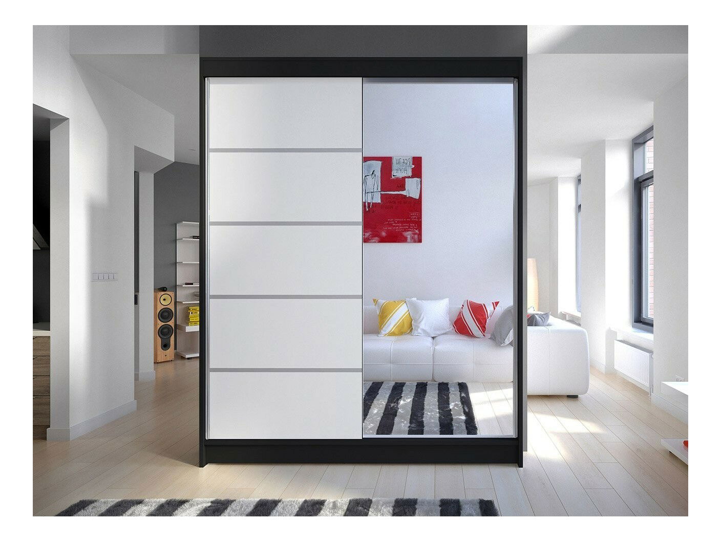 Šatníková skriňa Bianca III (čierna + biela + zrkadlo) (bez osvetlenia)